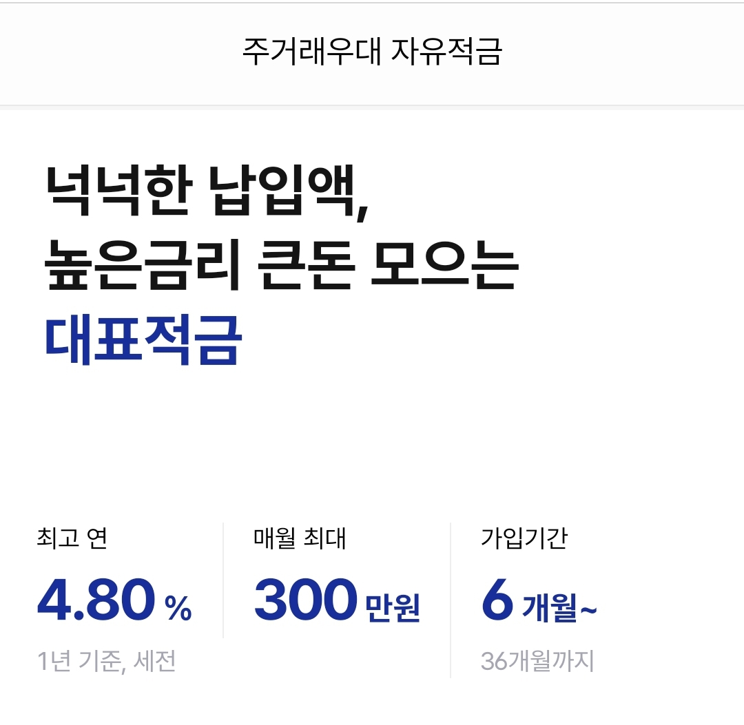 넉넉한 납입액,높은금리 큰돈 모으는 대표 적금!