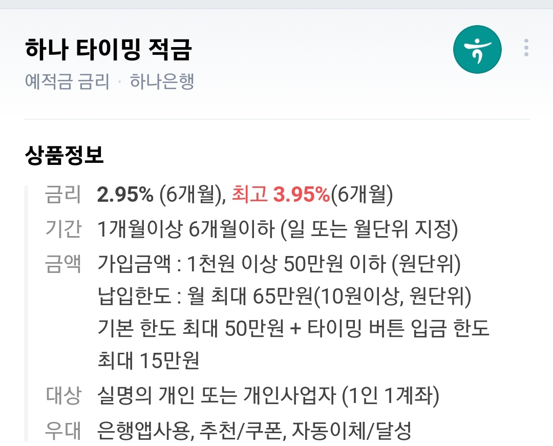 : 하나 타이밍 적금(https://han.gl/MSyMpg)